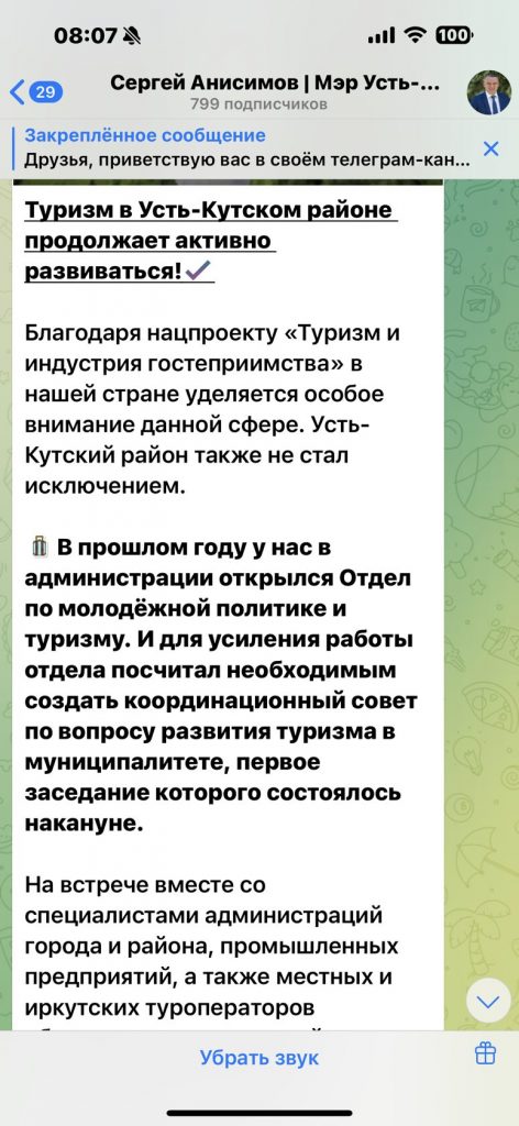 "...В прошлом году в администрации был создан Отдел по молодёжной политике и туризму. Для повышения эффективности работы этого отдела было решено учредить координационный совет, который займётся развитием туризма в муниципалитете, сообщает Сергей Анисимов мэр Усть-Кутского района..."
