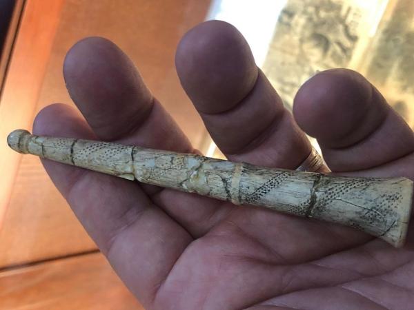 Археологи не решились прямо на месте извлекать артефакт, поэтому его вырезали из раскопа вместе с блоком глины и так отправили реставраторам в Новосибирск, где была проведена кропотливая работа по восстановлению находки. По словам ученого, части предмета соединились друг с другом практически без зазоров, и перед исследователями предстал жезл, украшенный спиралевидными и змеевидными полосами, а также 1065 лунками.
